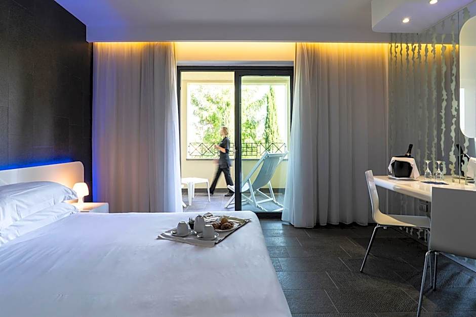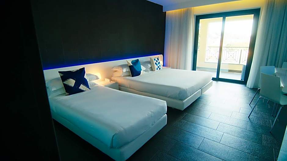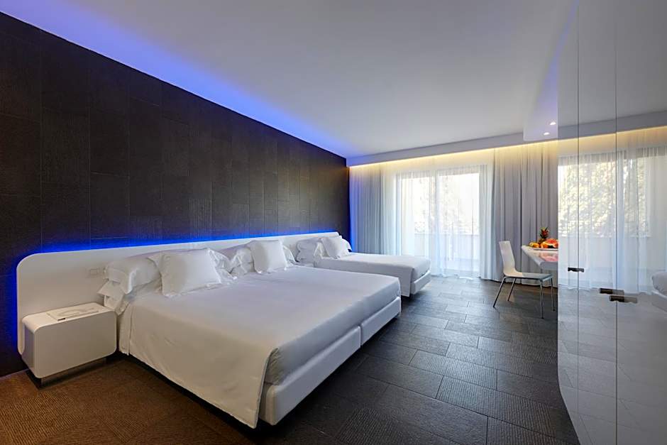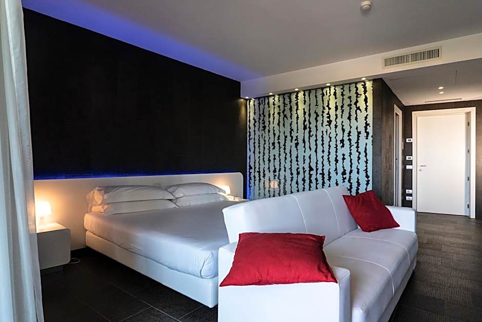 The junior suite is larger, giving you more space. All rooms have a modern design with LED lighting and minimalist furniture.